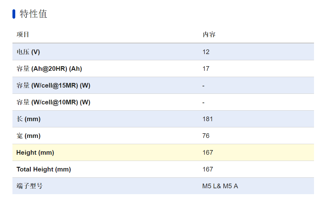 | 20小时率 20HR | 长(L) | 宽(W) | 高(H) | 总高(TH) | ||||||