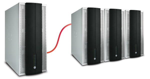 当一台塔式存储设备不够满足您工作上的需求,使用者可以搭配至多三台JBOD,以最简单的方式将容量扩充到448Terabytes(以使用14TB硬盘而论)。