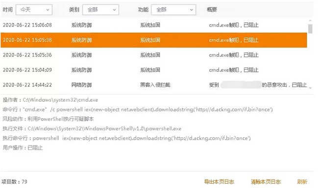 (4)火绒出现"隐藏执行PowerShell"、“利用PowerShell执行可疑脚本”等系统加固拦截