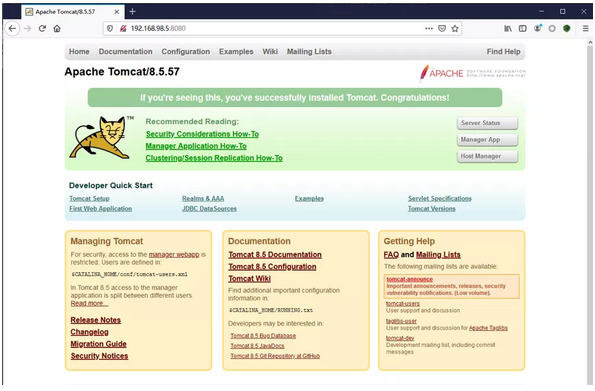 Tomcat环境运行成功如下图所示: