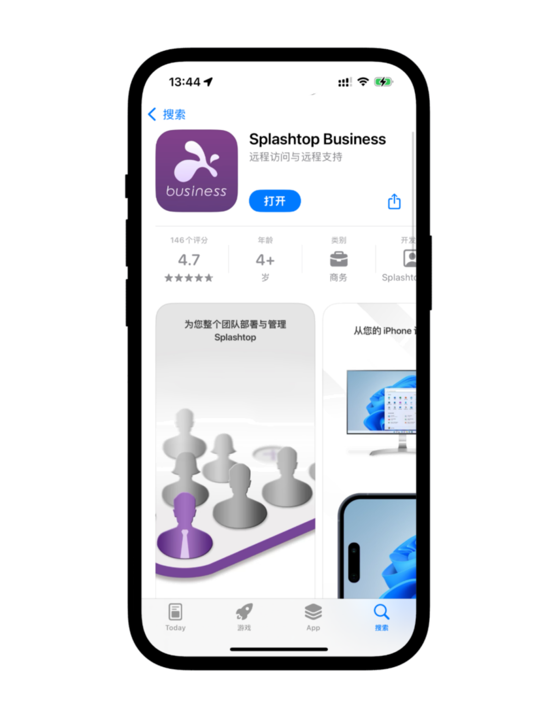 通过苹果 App Store 搜索下载“Splashtop”,认准官方开发者“Splashtop Inc.”。